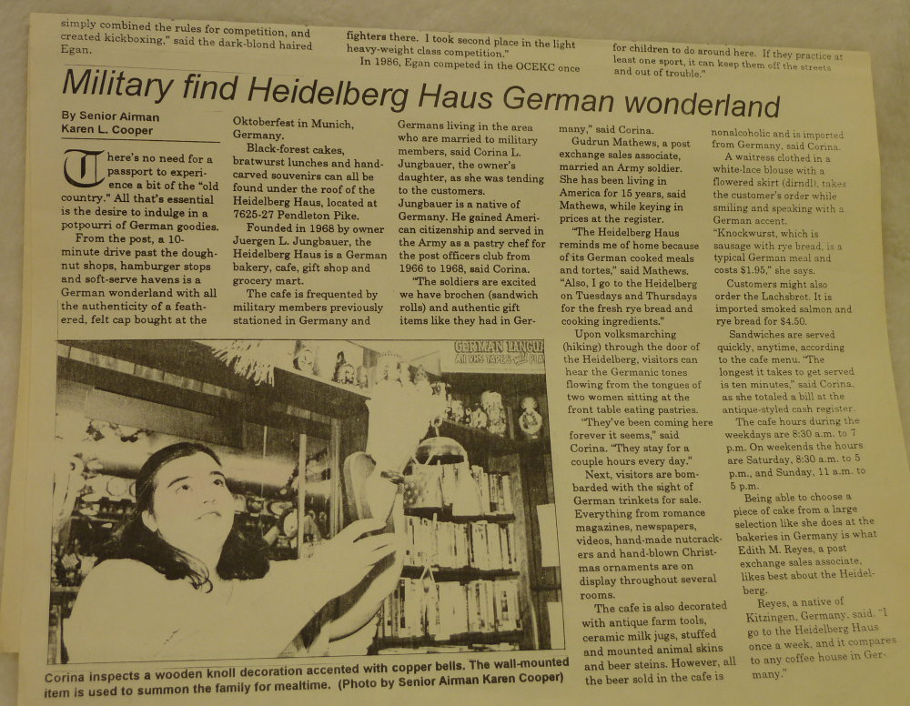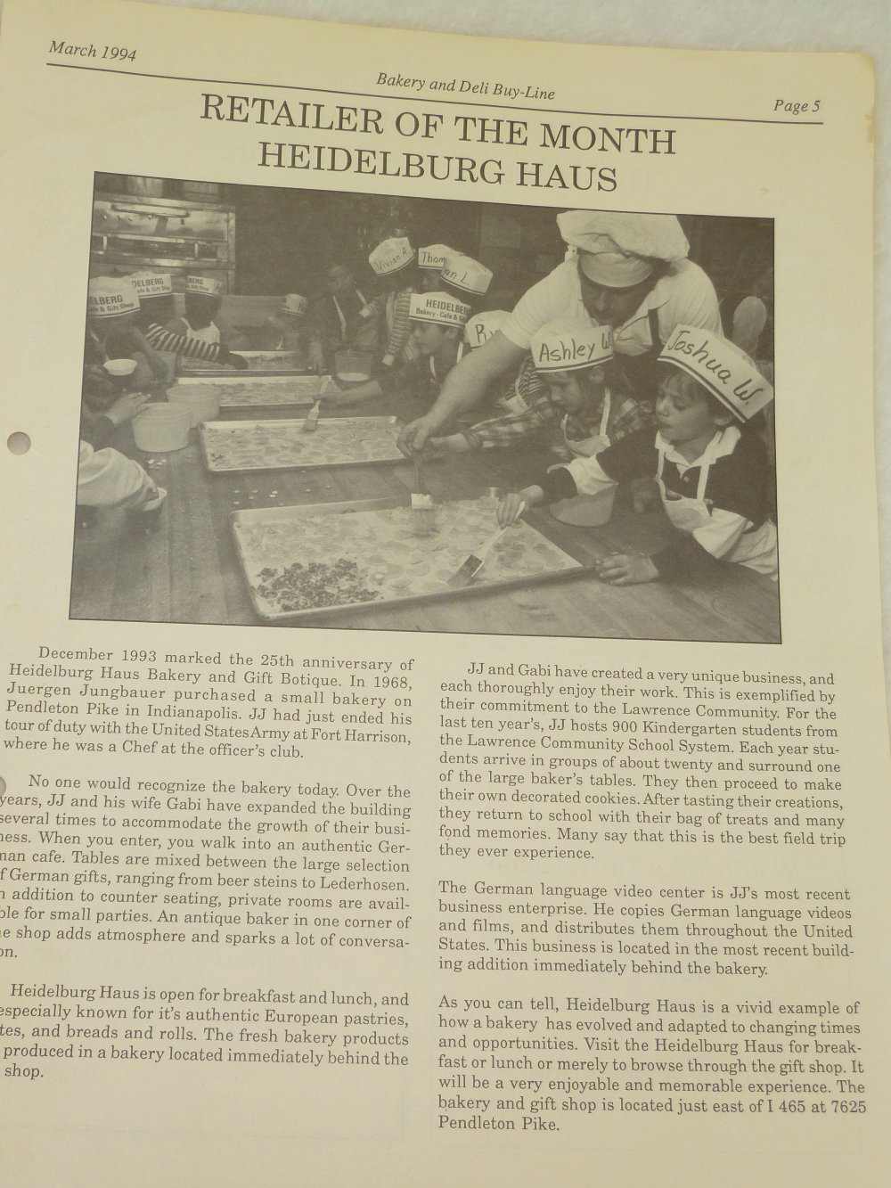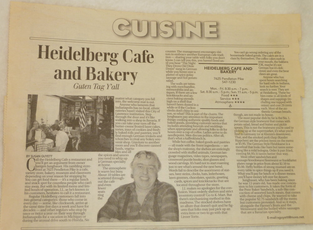 Tuesday thru Friday 8:30am to 7:00pm Saturday 8:30am to 5:00pm Sunday 11:00am to 5:00pm Kitchen closes 30 minutes prior to store closing. The Heidelberg Haus Cafe, Bakery and Giftshop will be