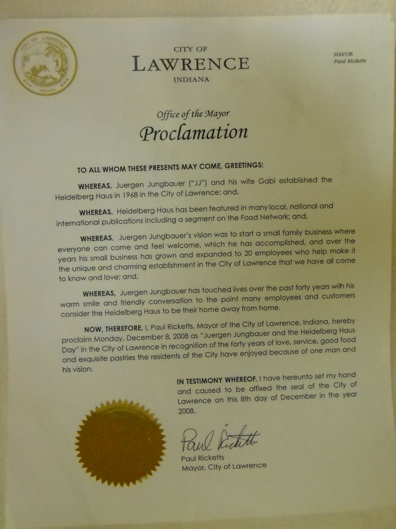 280 June 30, 2018 City of Indianapolis, Office of the Mayor - Proclamation Heidelberg Haus Day