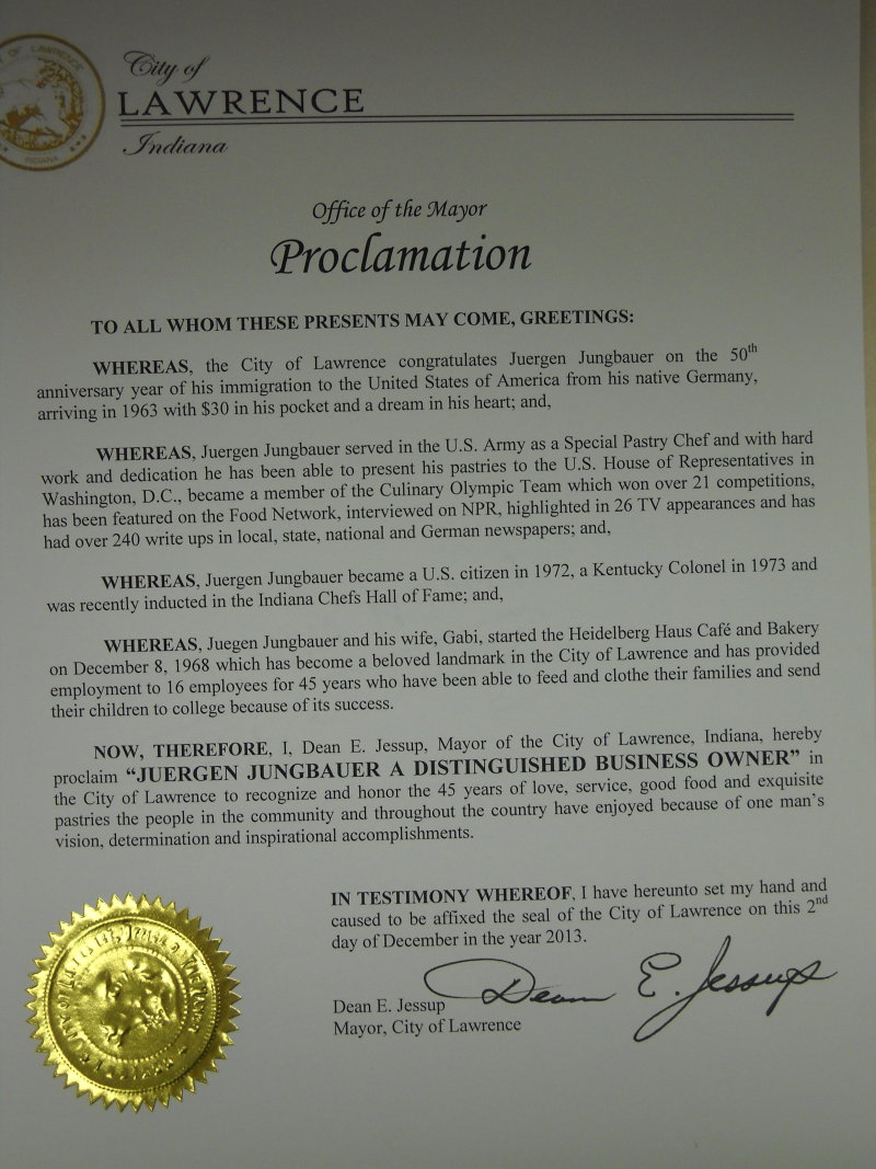 279 June 19, 2018 City of Lawrence, Office of the Mayor - Proclamation Juergen Jungbauer Day
