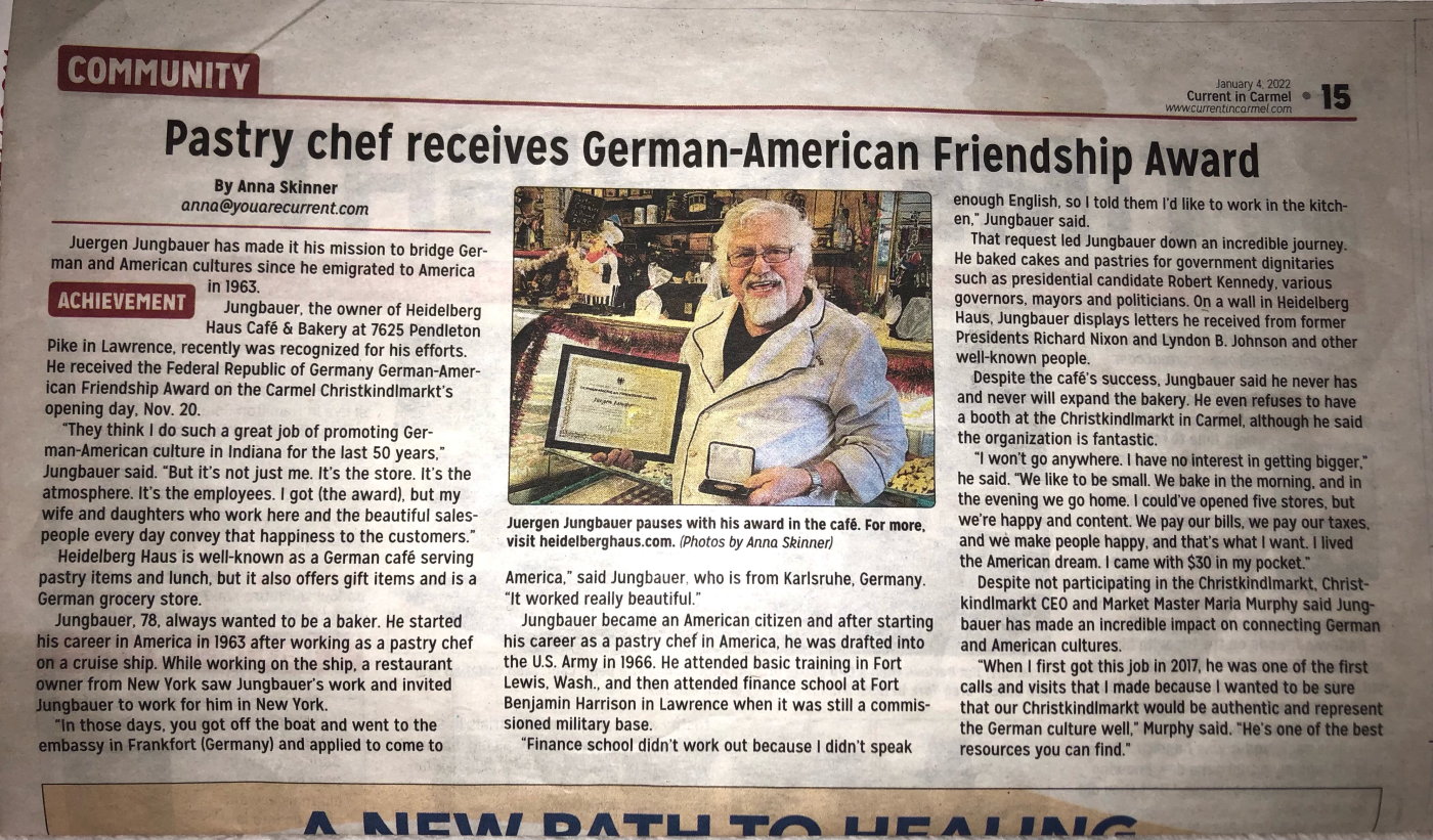 291 January 4, 2022 Current in Carmel - Pastry Chef Receives German American Friendship Award